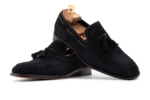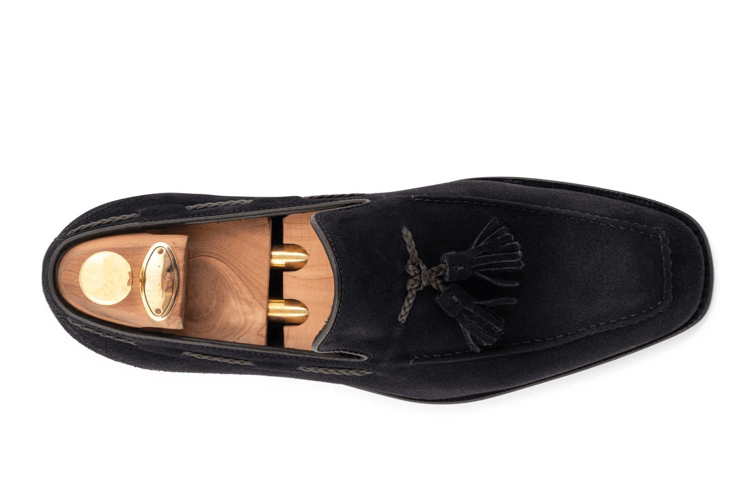 Dieser Harris-Loafer besticht durch seine einzigartige Eleganz. Er ist aus weichem Veloursleder gefertigt und mit einem raffinierten Veloursleder-Pompon sowie Lederborten verziert, die ihm ein besonderes und anspruchsvolles Design verleihen. Die Ledersohle und die Blake-Rapid-Konstruktion sorgen für Komfort und Langlebigkeit, während die blaue Farbe dem Schuh zusätzliche Klasse verleiht. Perfekt für alle, die einen unverwechselbaren Stil suchen.